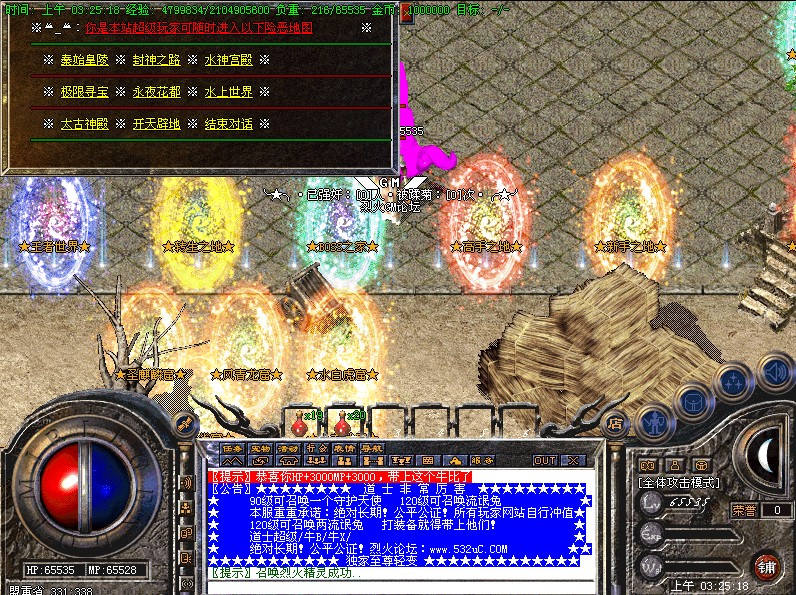 激情攻沙1.开区第三天全体行会集体拿沙2.新区第一任沙城行会奖励388W元宝3.老区每次拿沙奖励188W元宝!本服重重承诺:绝对长期!公平公证!所有玩家网站自行冲值绝对长期!