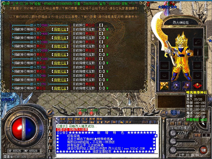 烈火GM论坛2011年最新元素至尊轻变守护版传奇服务端
