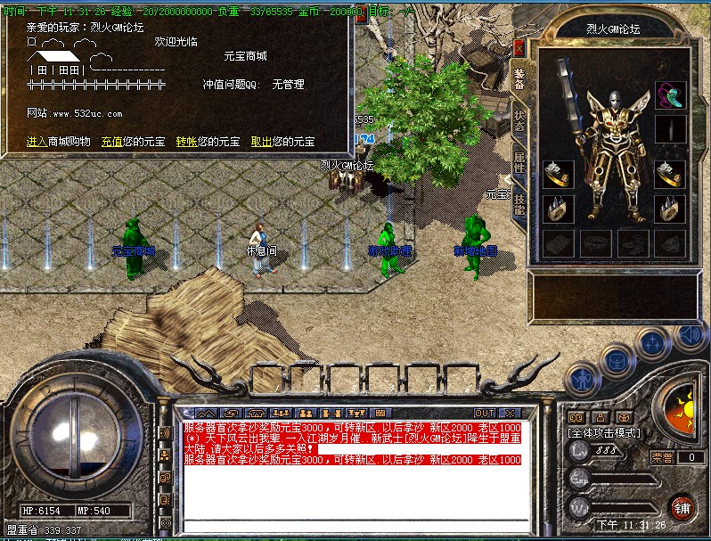 服务器首次拿沙奖励元宝3000,可转新区.以后拿沙 新区2000 老区1000