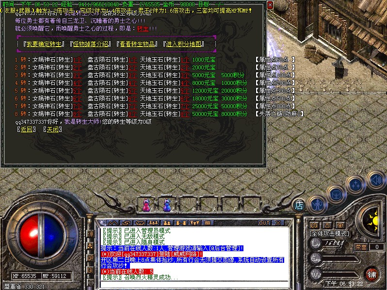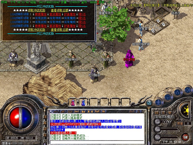 本服每天3个新区开放.第2天晚8点集体攻沙..沙城主奖励每人5万元宝..老区攻沙奖励每人2万.