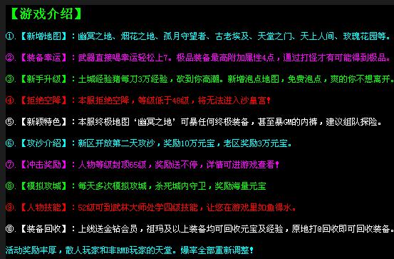 - ☉ V8引擎传奇端游【荒域专属单职业九大陆】Win一键端+配套补丁网站+架设教程