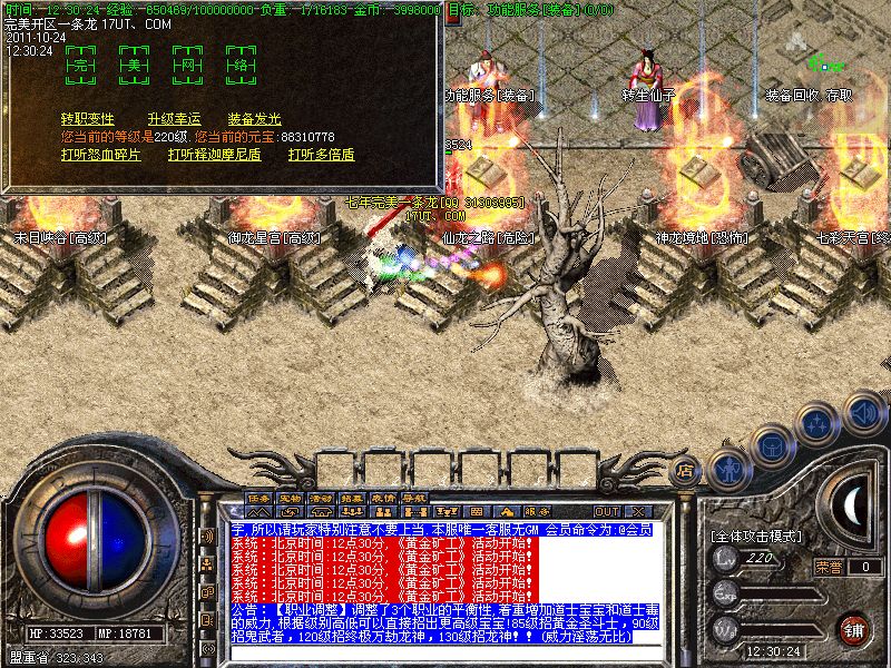 【特色地图】更新【七彩王者】【七彩天宫】【神龙境地】【仙龙之路】.此地图可爆终极装备!点击土NPC可进入!!!