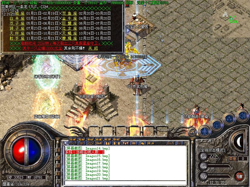 【十二星座】增加12星座,每20分钟每个星座刷3只守卫,其中一只为真,杀死必爆10000元宝!!