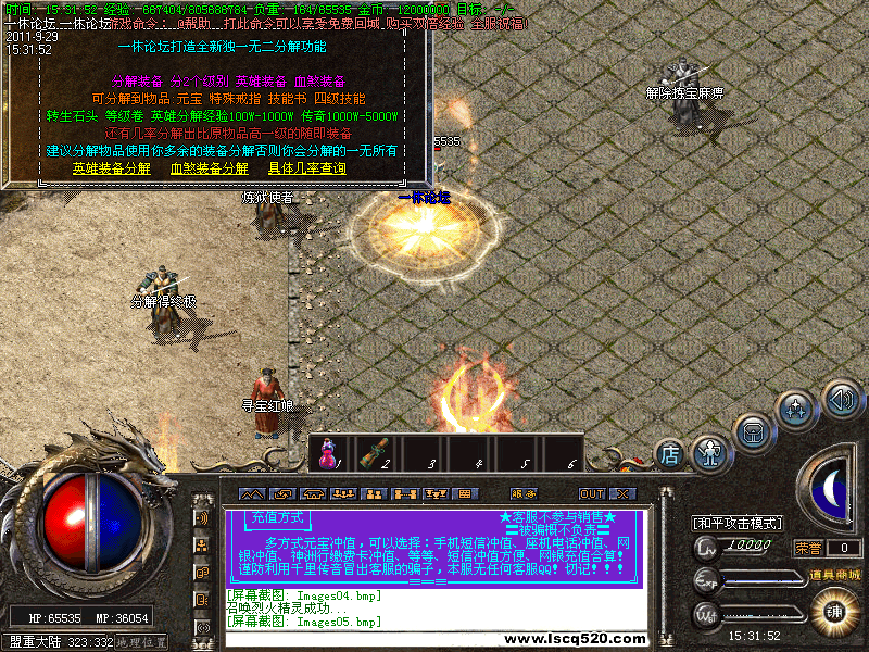 经验为盛大的500倍在传送员处直接传送到各地图的中层,免得一层一层的跑去麻烦.