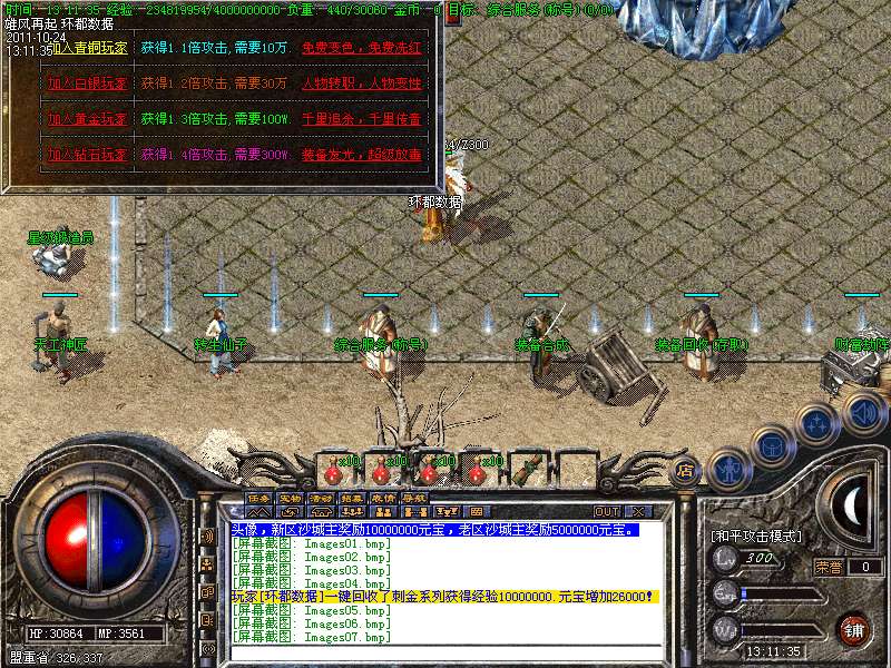 【更新】财富劫阵,BOSS爆出财富神石可以启动财富阵,启动的同时可以随机获得元宝!!满188层土药将会出现大量的元宝!!具体请查看土城财富劫阵NPC!!