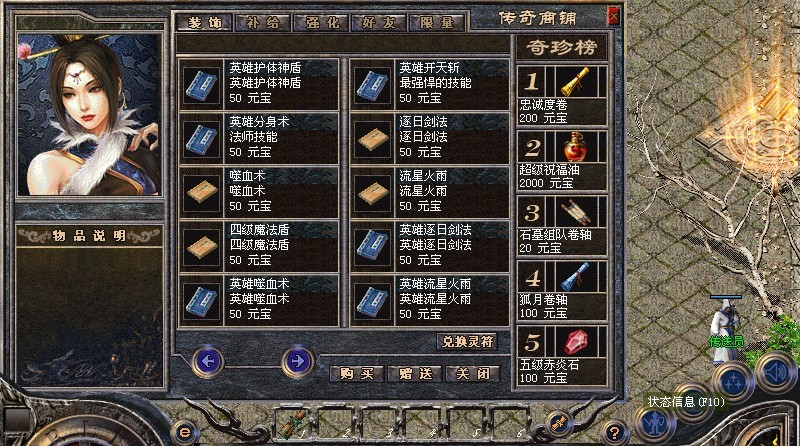 防盛大最新版本,无许任何补丁,如果在游戏看不见部分装备和地图请更新热血传奇最新客户端!更新方法:点击盛大传奇百区一直到进入游戏即可自动完成更新!