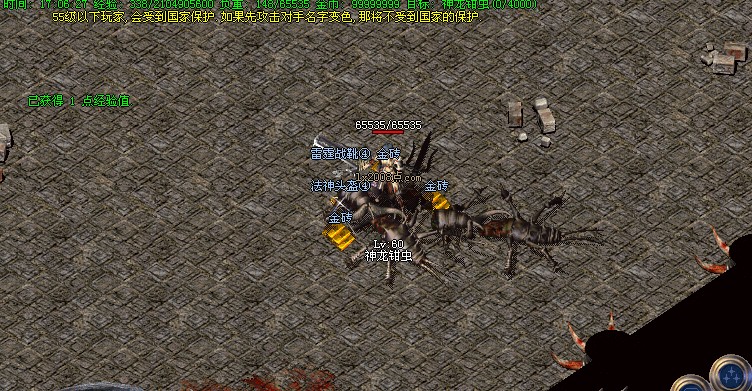 3. 55级以下玩家,会受到国家保护.如果先攻击对手名字变色,那将不受到国家的保护.