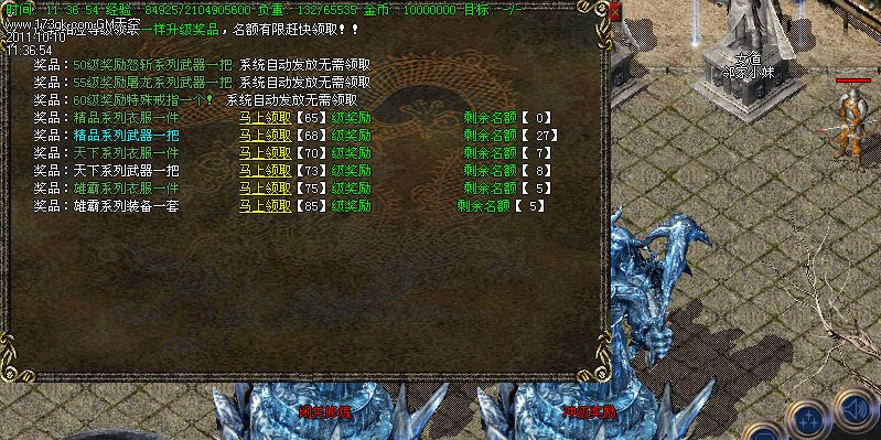 【游戏特设】:为平衡三职业,道士65级自动召唤圣斗士。75级召唤万劫神龙(麻痹属性),85级召唤2只!