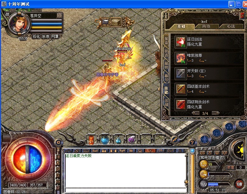 法师:雷电术、疾光电影、火墙、灭天火、流星火雨 爆烈火焰,冰咆哮