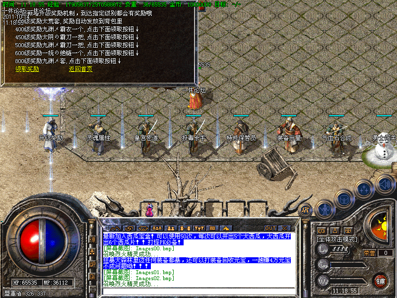 每天18:00-19:00举行行会争霸赛,胜利的行会奖励10000元宝,沙巴克不在是群雄争霸的唯一地图!!!【公告】:新增霸气九渊系列。穿起了9件能触发HP/MP5000 攻魔道1000隐藏属性。