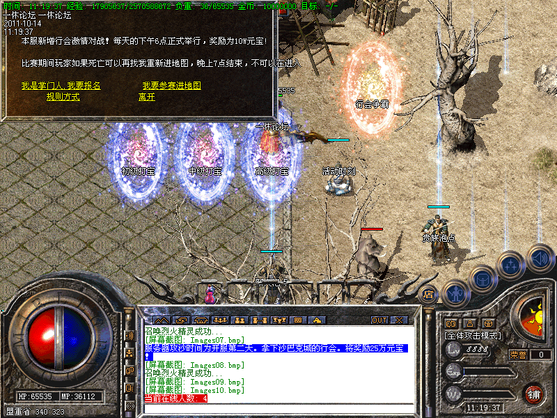 每天18:00-19:00举行行会争霸赛,胜利的行会奖励10000元宝,沙巴克不在是群雄争霸的唯一地图!!!