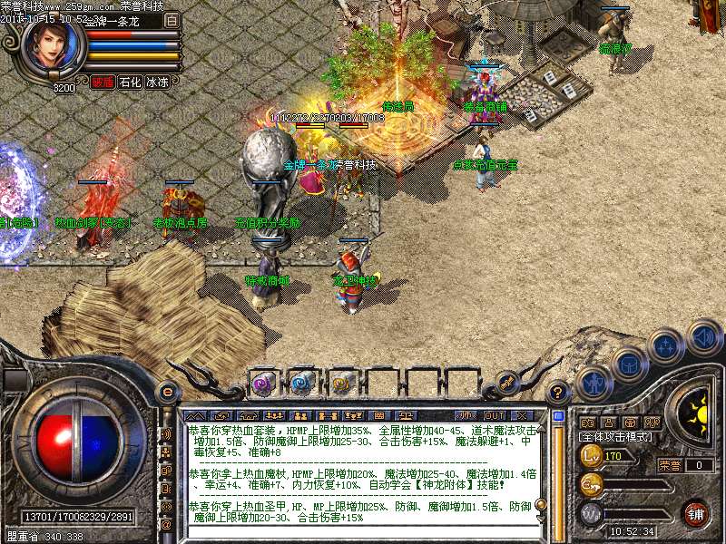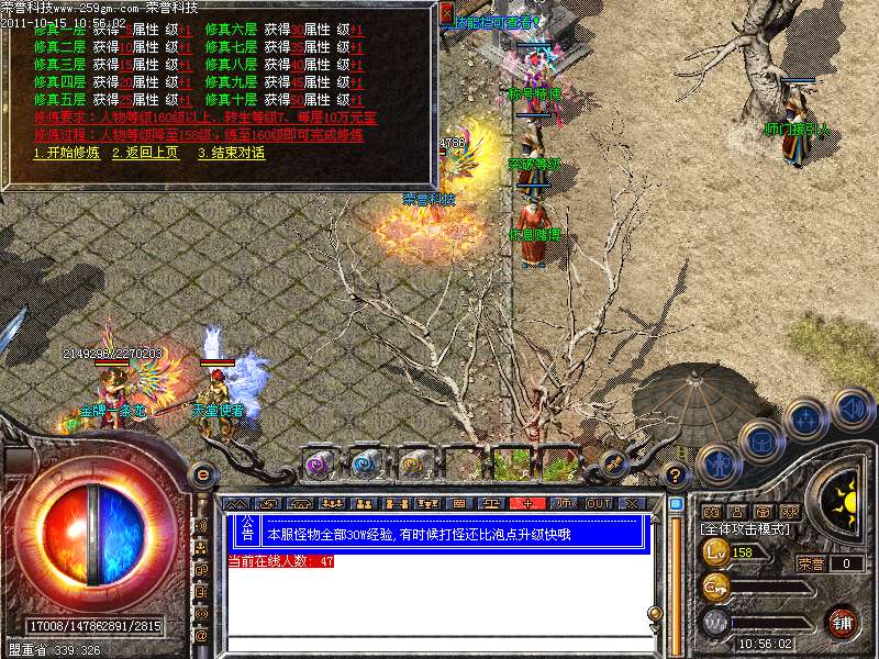 47级以上玩家 还可以组队参加酒馆的 火龙任务 完成奖励一亿经验 火龙神还会爆出虎啸 聚魔 符咒