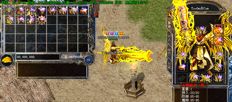 初级装备:疯狂打宝,高级打宝,难度递增,怪物爆率高,爆出传奇、特戒等