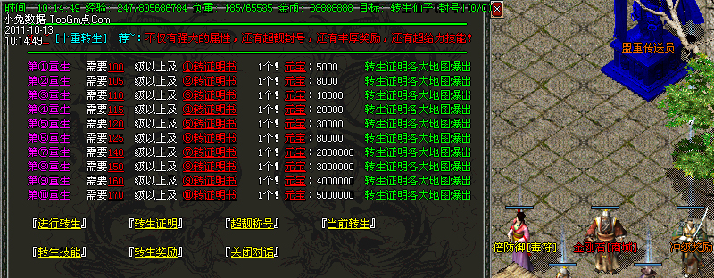 转生系统:独创一至十转,转生好转,超靓封号,转生地图,超强属性点<