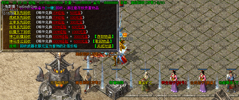 新增[在线回收],新手玩家打到初级装备,随时随地的@回收,很方便很给力