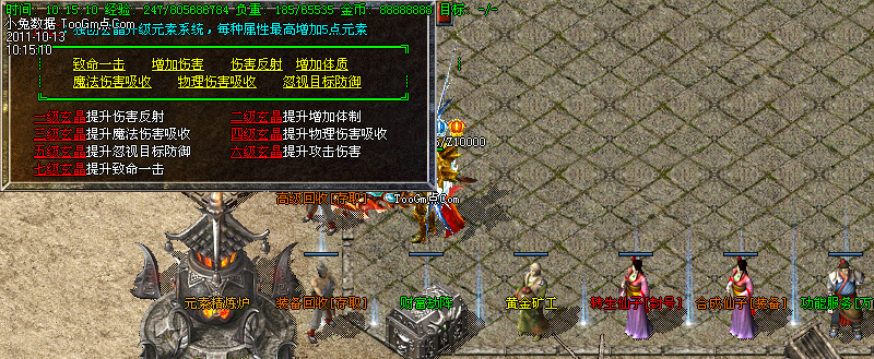 玄晶系统:土城老兵处增加灵魂属性升级功能!可以使用玄晶进行升级装备,玄晶各大地图均有爆出