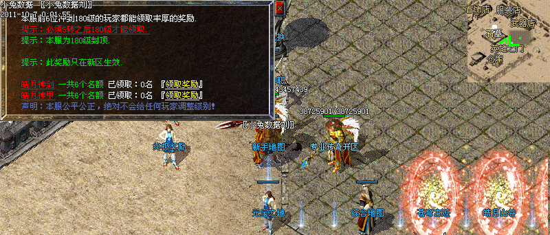 说明:新区自开区到第3天晚20点整进行首次攻城,首次沙城主奖励元宝800W元宝,老区天天拿沙奖励800W元宝!
