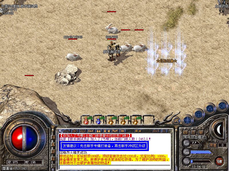 介于传奇城市地图太多,我们只留下土城和比奇两个城市,练级区也缩减成三个,无限刷怪,吃个十倍经验去升级去吧!