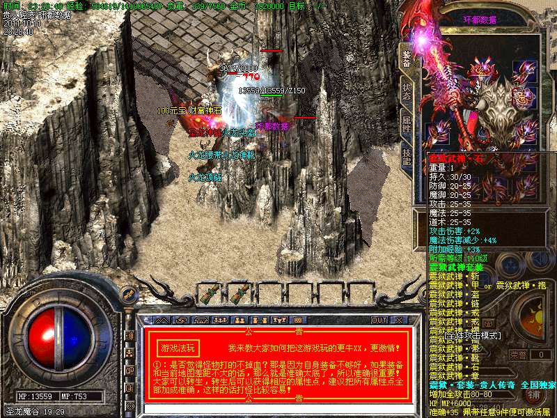 ① 装备循序:火龙套装—虎威套装—主宰套装—圣龙套装—传奇套装—浩月套装—冥元石化套—震狱武禅套—雄霸风云套(超级牛XX)。本服所
