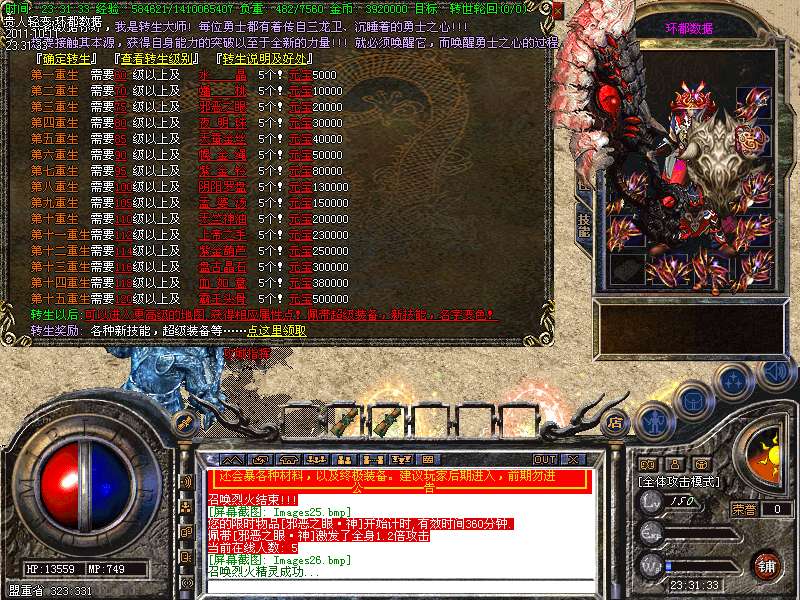 重要!大家可以转生,转生后可以获得相应的属性点,建议把所有属性点全部加成准确,这样的话打怪比较容易!