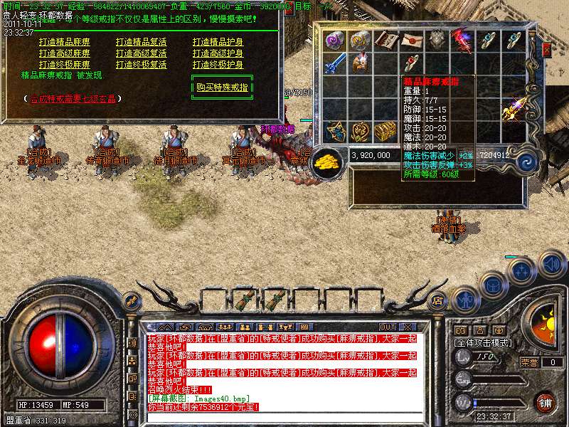 ③ 本服所有职业都有厉害的地方,我实话告诉大家,后期道士绝对牛XX,法师同样的也是,战士也不用说。(好象有点废话)