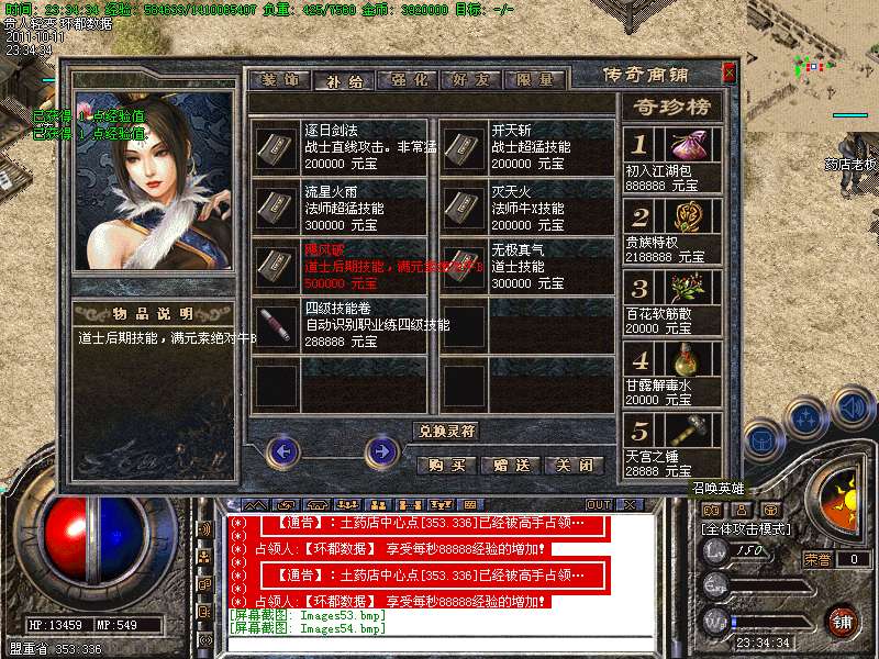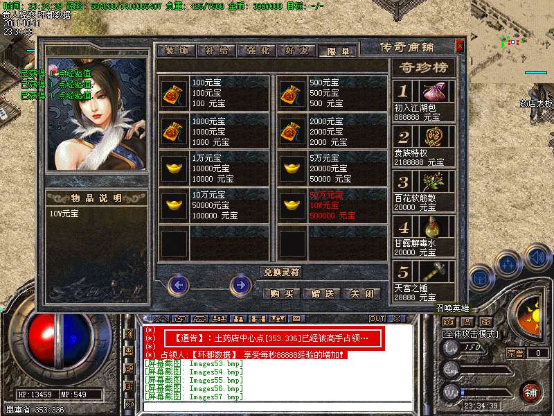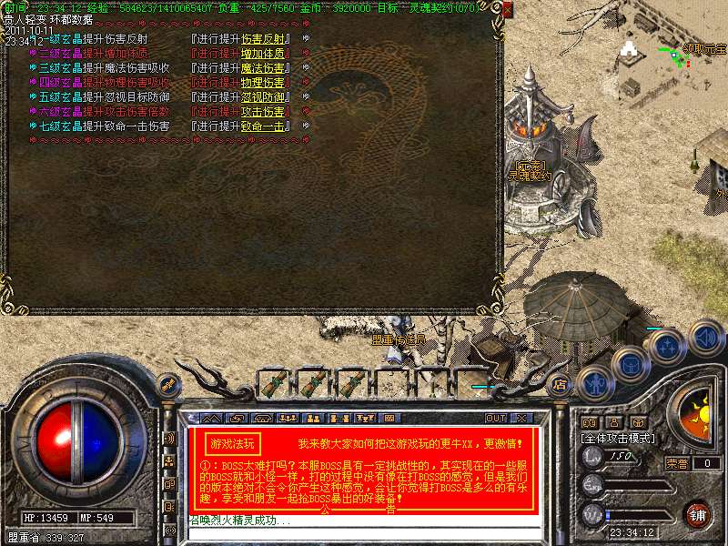 ⑥ 财富神石、合成晶石、震狱宝箱、物品用处介绍!财富神石:玩家打到财富神石可以去土城341 342处免费抽取元宝喔!合