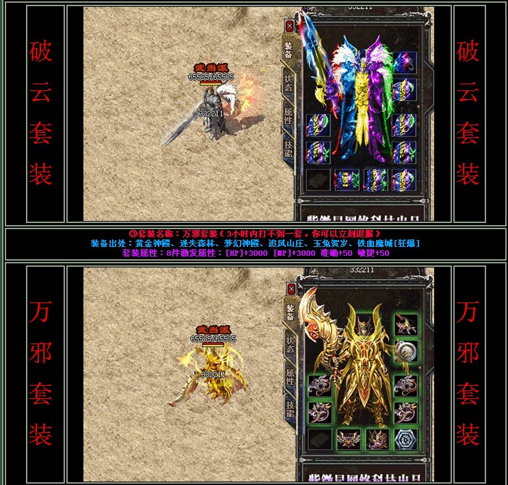 从¤万邪の套开始装备要求等级比较高,如果您的等级达不到要求,可以精炼后佩戴。精炼后的装备只要转生后就可以佩戴!