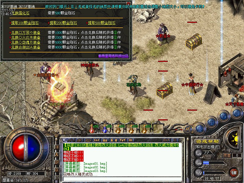 介于传奇城市地图太多,我们只留下土城和比奇两个城市,练级区也缩减成三个,无限刷怪,吃个十倍经验去升级去吧!