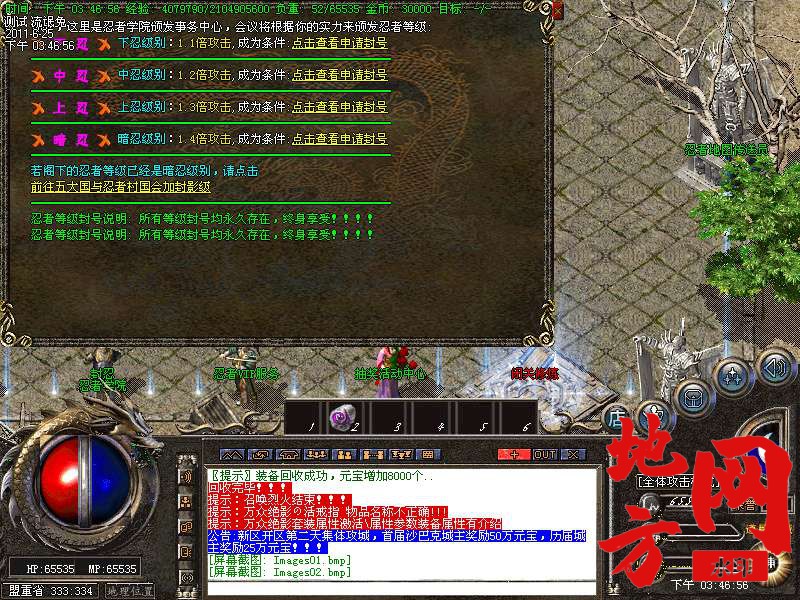 【影级设置】 本服的火影等级分别为:下忍,中忍,上忍,影级分别为:土影|风影|水影|金影|火影|冰影|雷影|万众绝影- N2 V1 X) t" a( D4 C